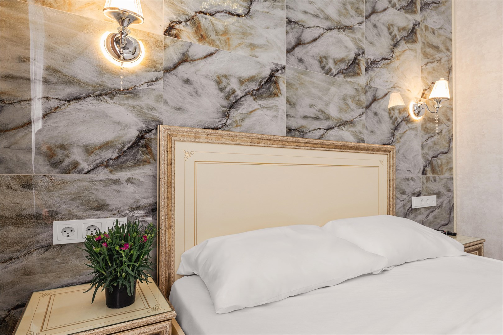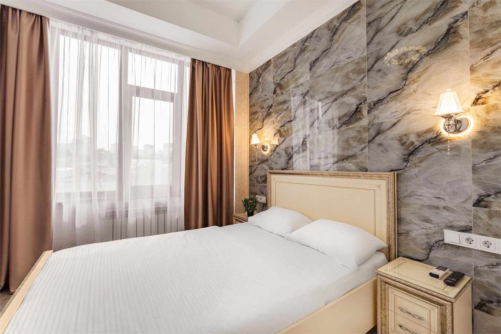 - Мебель: зеркало, кровать двуспальная, прикроватные тумбочки, шкаф