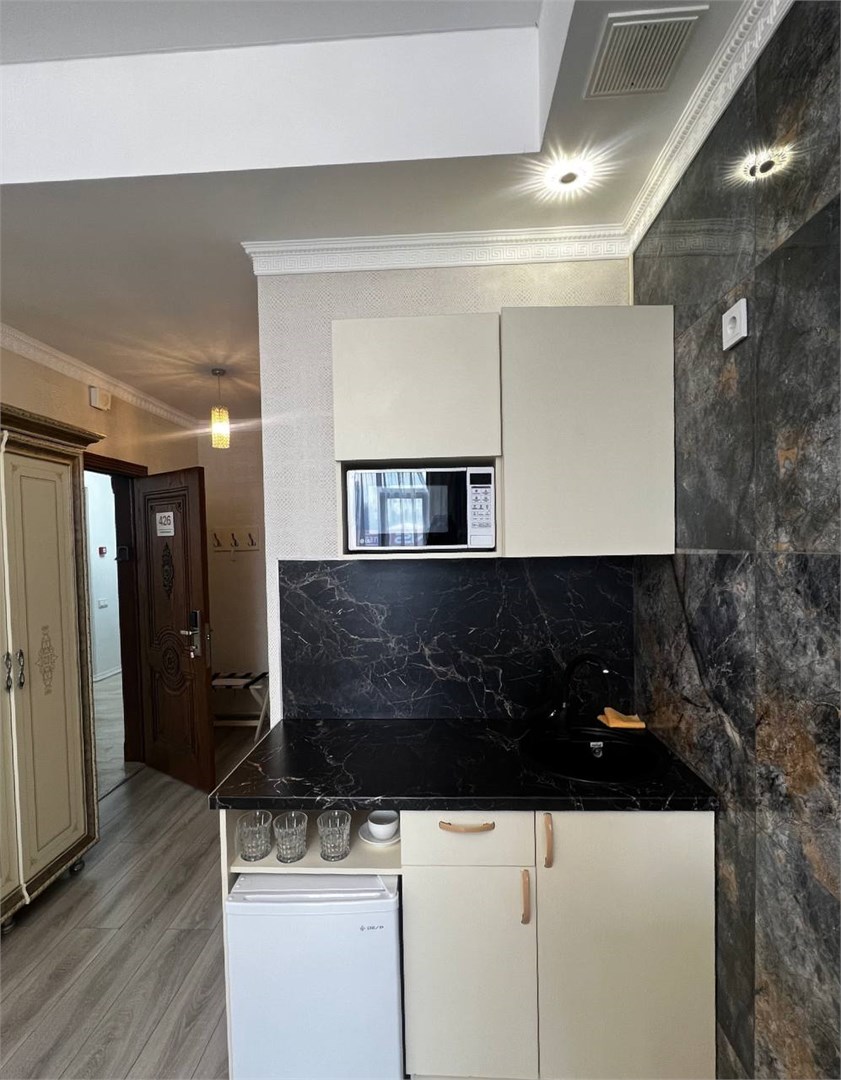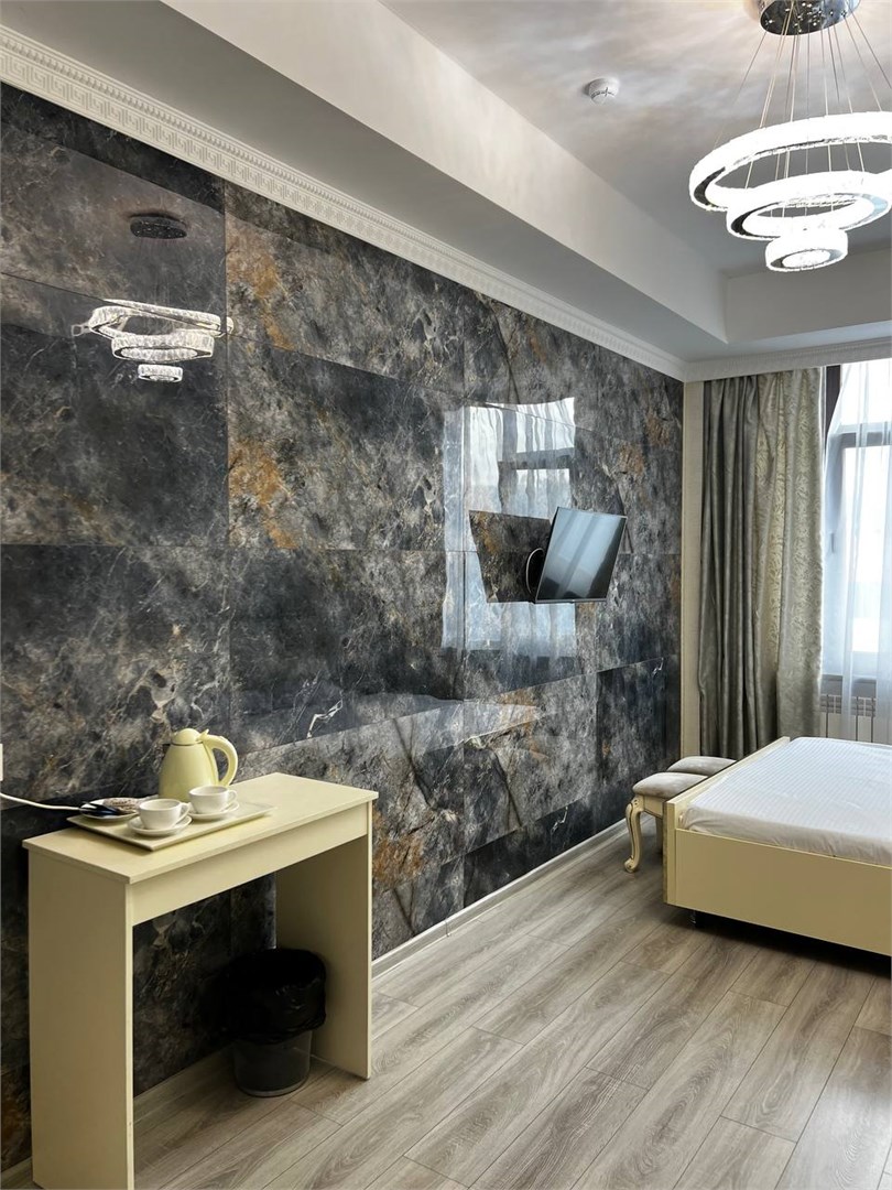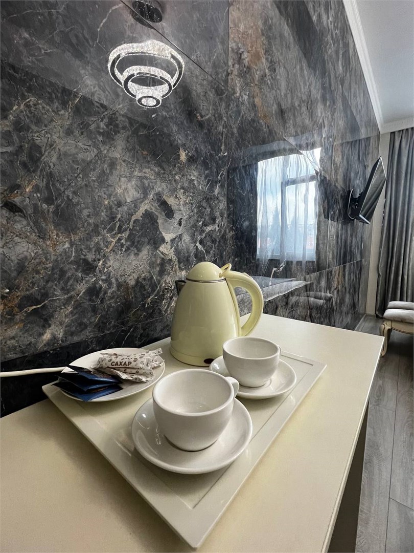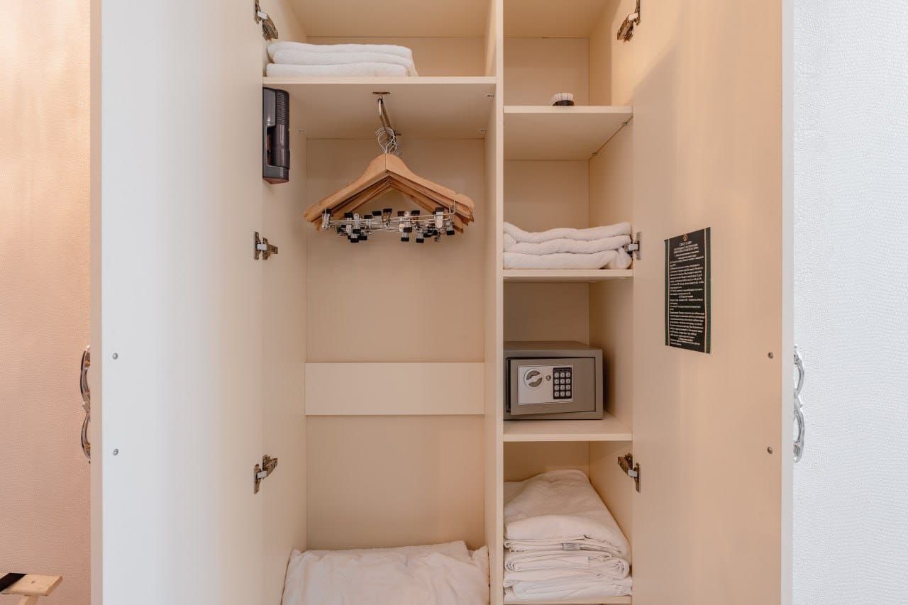 - Оборудование: кондиционер, микроволновая печь, мини-холодильник, набор посуды, сейф, телевизор, электрочайник
