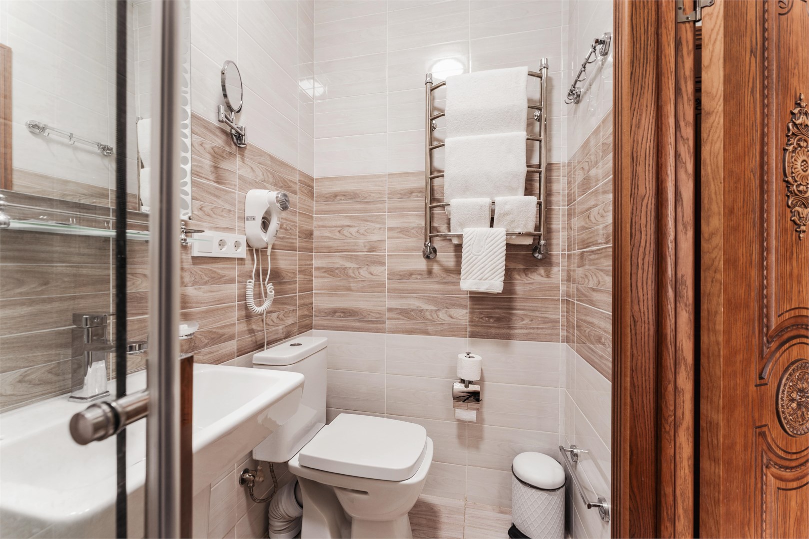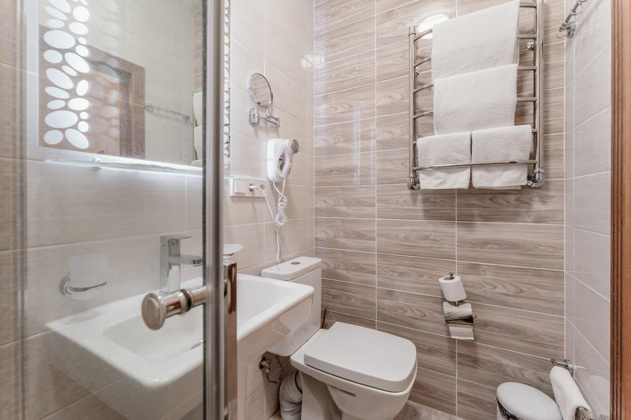 - Санузел: с душевой кабиной, туалетные принадлежности, фен