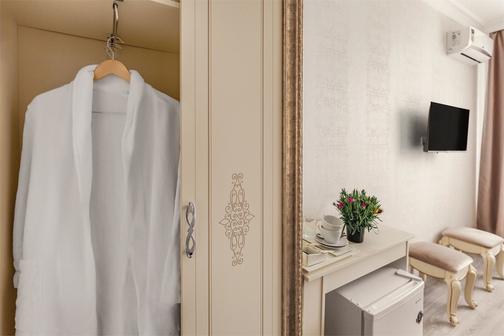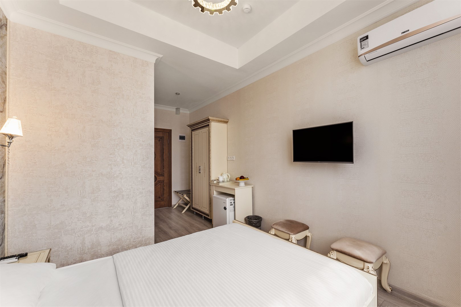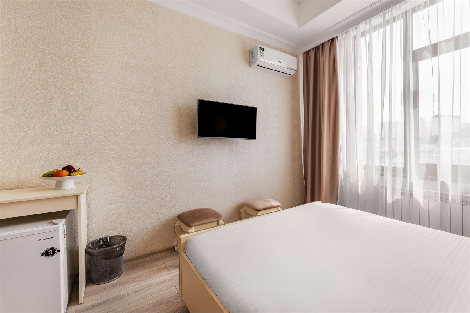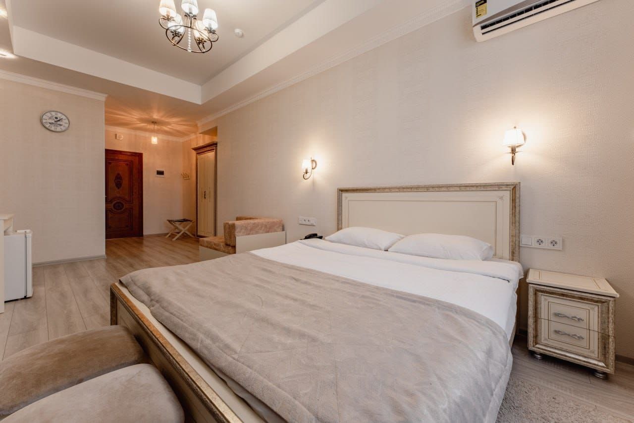 - Оборудование: кондиционер, мини-холодильник, сейф, телевизор, чайник