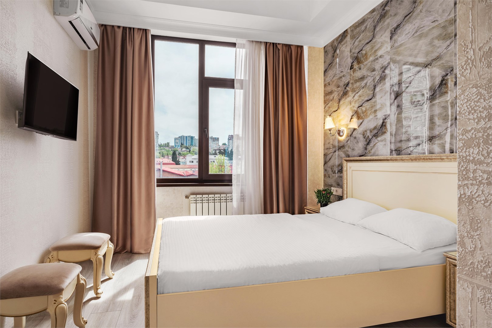 - Оборудование: кондиционер, мини-холодильник, телевизор